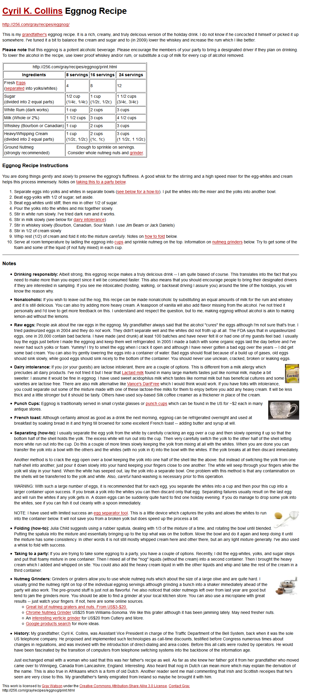 Why was this recipe exalted above all others? Simple really – it provided a formula for making a non-alcoholic version, and it provided detailed instructions for separating eggs. Don’t laugh, if you’re not a kitchen person this presents a fairly daunting obstacle for the first-timer.