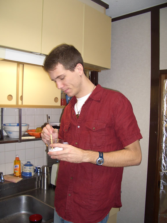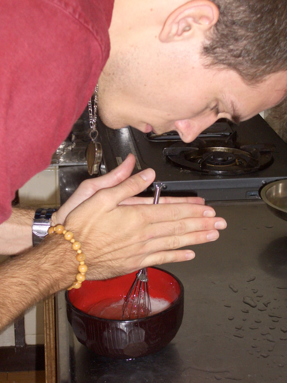 It was precisely at this point that Satoshi walked in and tried to guess what we were making. I admit, it looked pretty damn disgusting at this juncture.