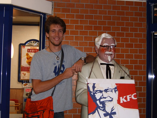 The only problem with this plan was that the first major stop was over an hour away on foot, and the next was 20 minutes past that one. Well, 75 minutes of walking down umpteen-million sidewalks later, we made it to Kamegawa train station. The walk was not without incident though, I ran into this old friend along the way.
