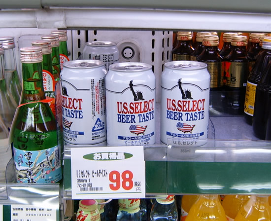 So 20 minutes later we staggered into Marushoku supermarket and headed for the drink section. My stomach had about had its fill of Japanese beer, so I grabbed a Chu-hi, which is like an American wine-cooler, although far less syrupy – definitely still a ladies’ beverage though. While I was making my selection I spied this bizarre product.