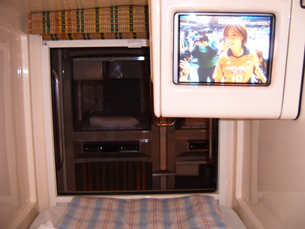 Lastly, inside each capsule, just to make you feel at home, was a small TV, radio, and for privacy you would pull down the shade at the end of your tube, no doors.