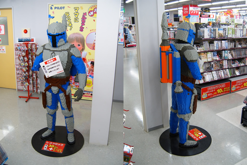 For whatever reason, I ran into 3 excellent statues of a type on this trip. The first being those crackhead mannequins, the second being this totally awesome one-armed Lego Boba Fett.