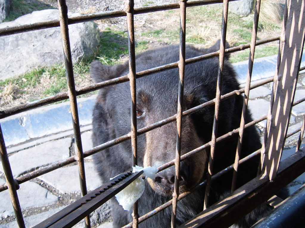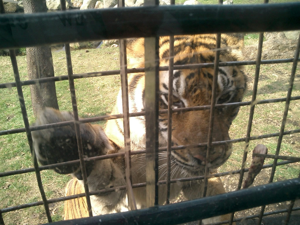 Talk about guilty sins. If I had a dollar for every time I’ve been told, or have read a sign in my life that said “Don’t Feed the Animals,” I could buy half of Alabama (the less crappy half). The whole time I couldn’t help but make comparisons to Busch Gardens back home. There you’ve got these multi-million dollar animal enclosures where people ooh and ahh from the other side of a deep moat and a very tall fence, and here I am in Japan – of all places – feeding chicken livers to a Bengal Tiger – through the metal grating – on the side of a bus – that’s shaped like a Bison…