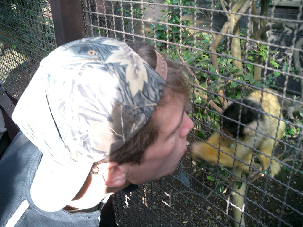 A short walk further took us to the monkey house. Happy as we were to be free of the killer kangaroos, we were unprepared for the simian madness contained therein.