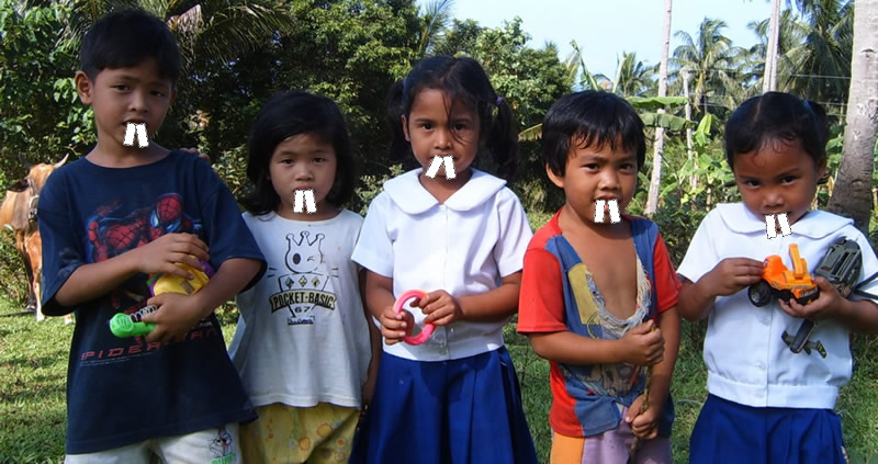 Cute kids, aren’t they? For just $2 a day YOU can make a difference in a child’s life! Ha! Just kidding! The reality is these lil’ bastards will happily steal the shirt off your back the moment you take your eyes off ’em! The one on the far left is actually 17 years old — everyone calls him “Babyface.” Look at the girl next to him, you know she’s just thinking “I’ll steal the tall sucker’s wallet the second he turns away” — you can see it in her eyes!