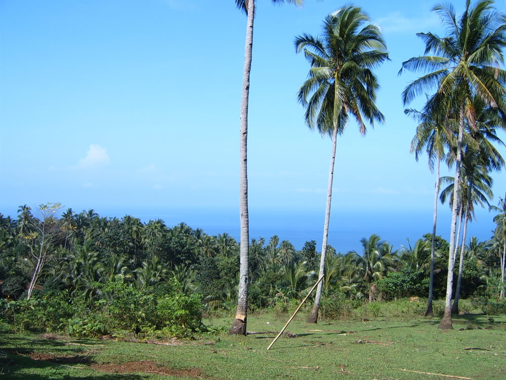 Camiguin is an oval shape of sorts and unfortunately for you I live on the north end, the skinny end. So the perspective of this picture keeps you from seeing all 7 volcanic peaks we have here. We’ve had a lovely string of sunny days this past week, but even so I’ve yet to see the top of the highest mountain on the island, Mt. Hibok-Hibok — that’s it dead center with clouds obscuring its upper reaches as usual. You can see three large white specks in the middle of the shoreline, that is Paras Beach Resort where you can stay and pay 900x the actual retail price for anything your heart desires. I currently live in YumBing, the sitio (village) directly behind it, perhaps 50m from the ocean.