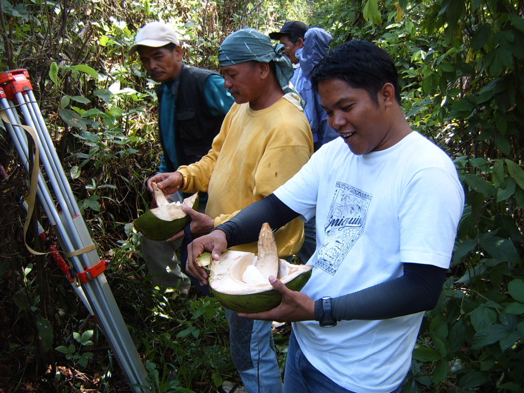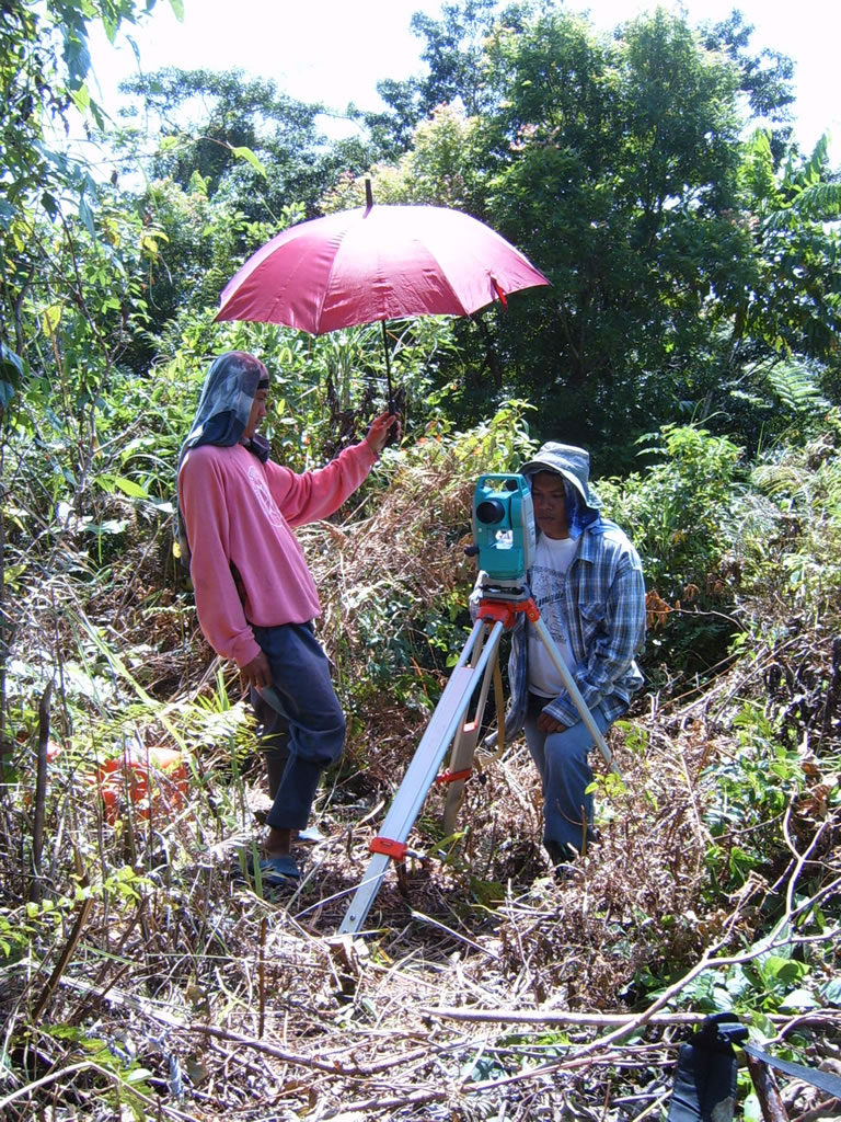 My final act on the island of Camiguin was to head back to San Isidro and GPS the CBFM site with Jorge and Nicoles the surveyor. Originally Jorge, Nicoles, and I were scheduled to begin work on Monday, March 20th. However, Nicoles’ brother died and we delayed until Wednesday the 22nd while they buried him. Then, as it turned out, there was some trouble with the actual burying him part (“I’m feeling better…” “No you’re not!”) so it wasn’t until Thursday that Jorge and I finally met up with Nicoles on the mountain. Nicoles is the head of a Department of Environment and Natural Resources land survey team, and we joined them for the morning’s work. The plan was that Jorge and I would follow while they slowly surveyed their own project and when we passed near markers of interest to me they would point them out. In the meantime I got an excellent firsthand reminder of the wonders of government efficiency.