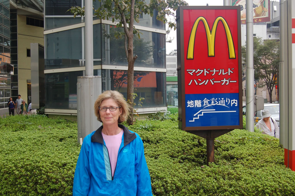 Then we visited the Post Office for some cash (generally only P.O. ATMs process foreign credit/debit cards) and mom insisted we take her picture in front of a Japanese-language McDonald’s sign.