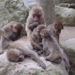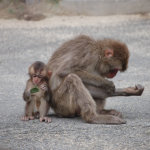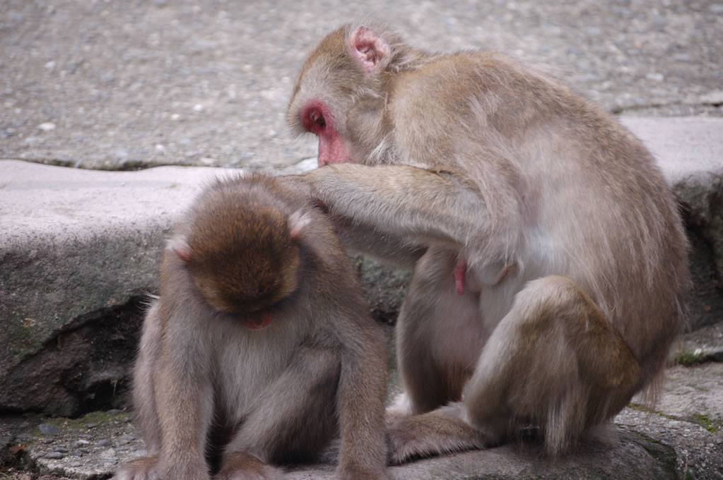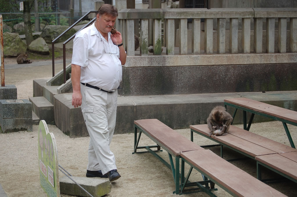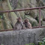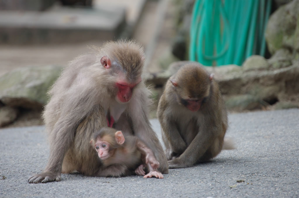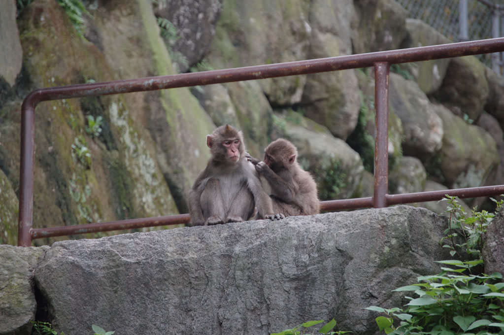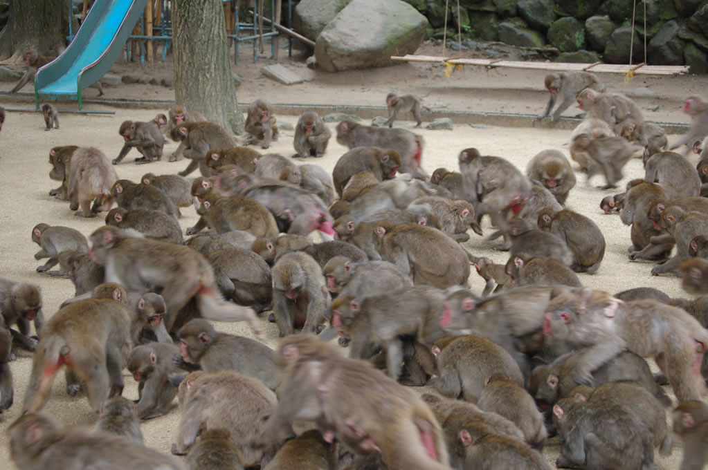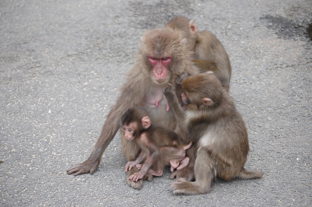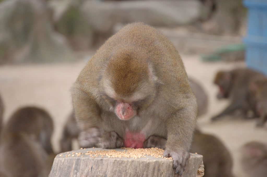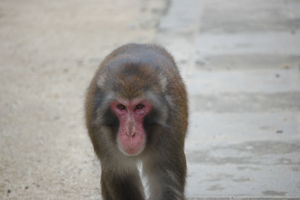 Completely by chance, we had arrived 5 minutes before the daily feeding session for the larger of the two monkey clans. Two clans reside on monkey mountain, one numbering perhaps 750 monkeys and the other closer to 500. They are fed once a day during the summer and twice daily during the winter to account for the lack of edible vegetation on the mountain. At precisely 2pm a bell was rung, getting the attention of every monkey in sight, and then all hell broke loose.