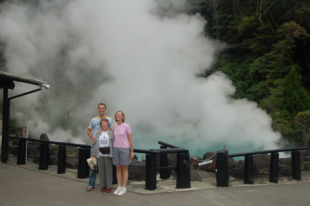 After the Monkey / Marine adventure we stopped for lunch at Beppu-eki (train station) where Choki-san picked us up for a nice drive through the countryside. On the way out of town we stopped at a tourist spot called “Umi-jigoku,” which literally means “Ocean Hell.”