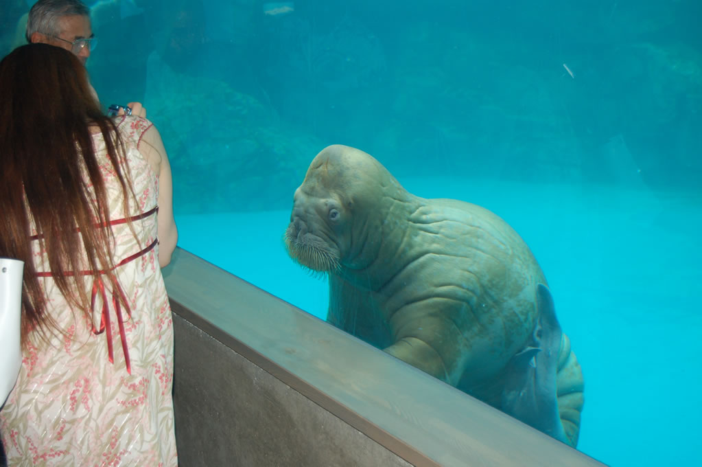 The highlight though, hands down, was the walrus tank. Now I’ve been to a few aquariums in my time, but it occurred to me as we followed the signs to our destiny that I had never actually seen a walrus in person, only on Discovery Channel TV shows and the like and usually just big fat males sumo-ing each other around some beach in California.
