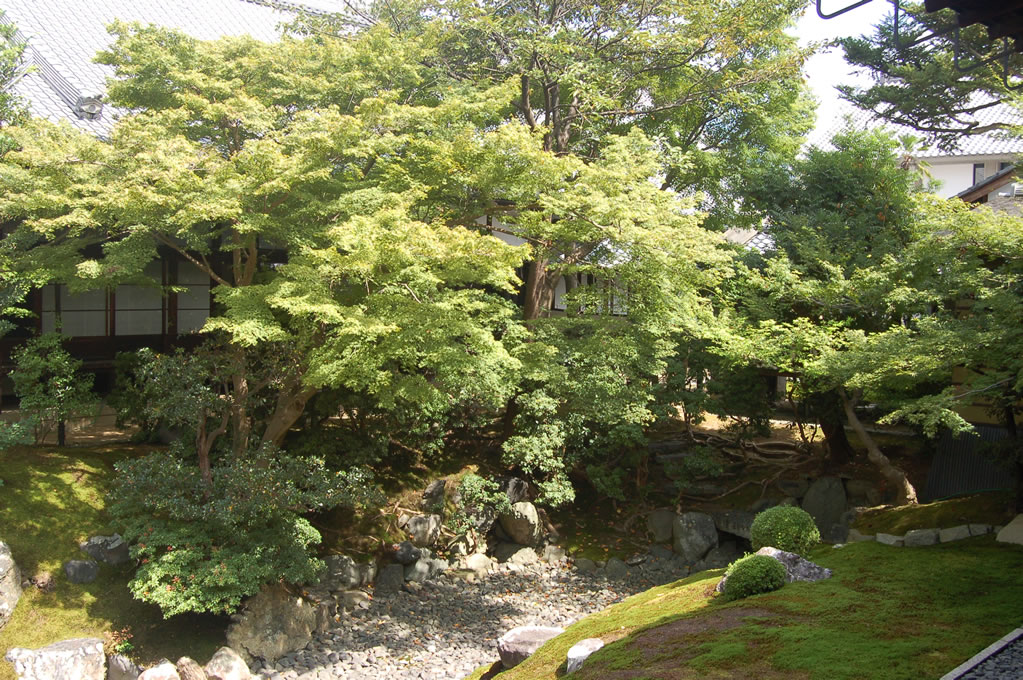 Checking a map, I found a rather large Zen Buddhism temple & school north of the Palace. We headed through a residential neighborhood on foot and found it shortly. While we weren’t allowed to take pictures of the more precious rooms and objects, reasonable I think, we did get some shots of the impressive gardening and the first Zen rock garden my parents have ever seen in person.