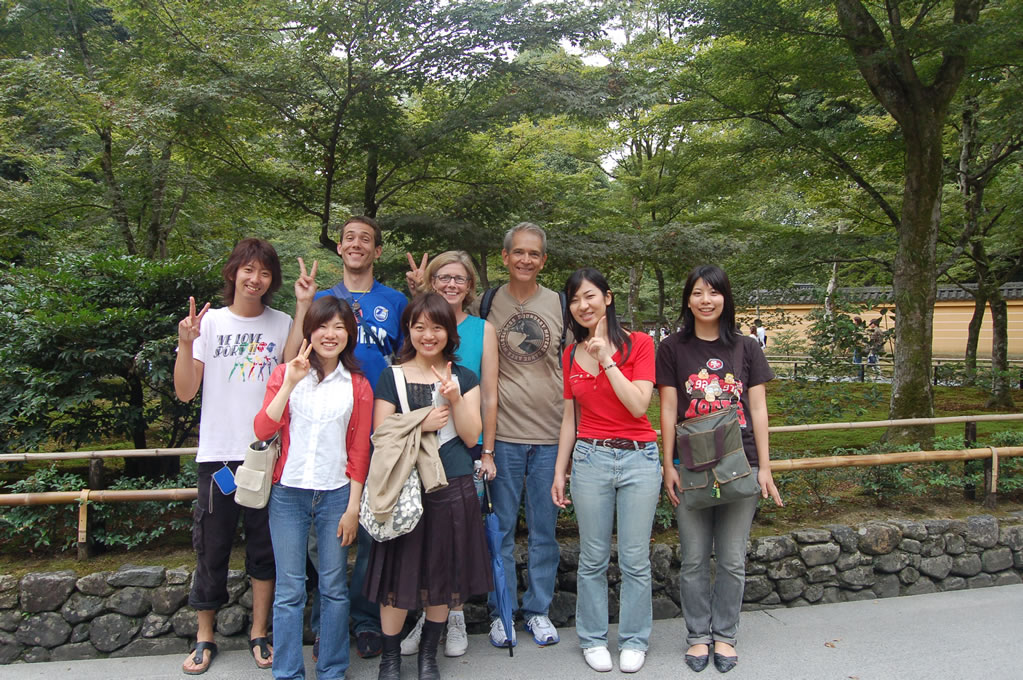 Anyhow, visiting Kinkakuji proved quite a bit more educational for my parents, and relaxing for me, than expected. As we headed towards the main gate with tickets in hand, we were approached by a group of about a half dozen Japanese college students. A girl politely stopped us and asked if we would like a free tour. Long story short, these kids came from a local university and spent several weekends a month giving free tours at Kinkakuji to foreigners in order to improve their English-speaking ability. Sounds like a win-win situation to me!