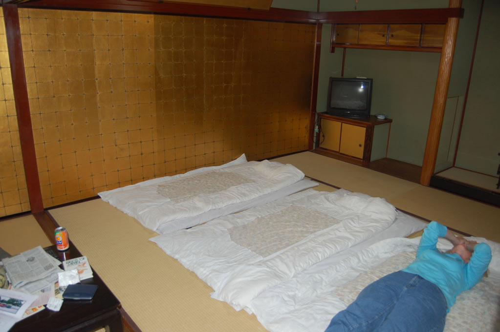 Late in the evening we finally reached our ryokan in Kanazawa, which had these awesome gold leaf sliding doors.
