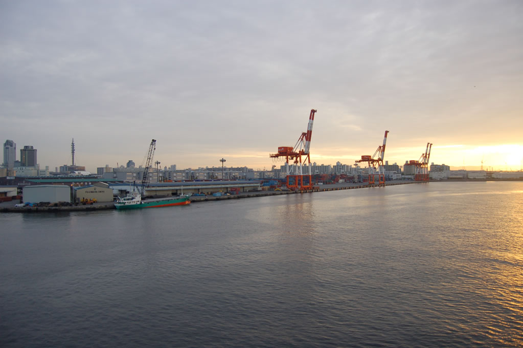 So Saturday, Day 7 dawned to find Mom and Drew sleeping soundly in our bunks and Dad up on deck enjoying the sunrise and the final leg of the ferry cruise into Osaka harbor.