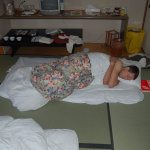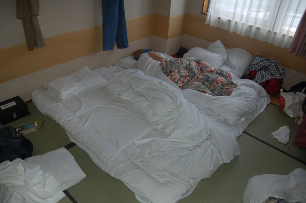 For our big day kicking ass all around Kagoshima, mom and I got a great start by pretending to be dead on the floor of our room. Japanese futons, even the ones you get at a cheap hotel, are damn comfortable – something that my parents will willingly attest to methinks.